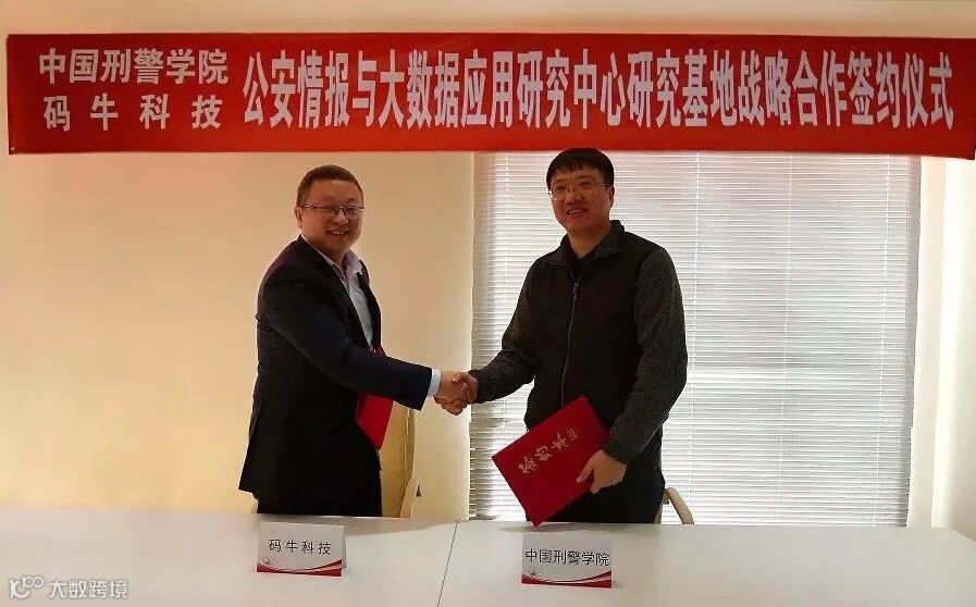 1月23日,码牛科技与中国刑事警察学院战略合作签约仪式在京举行,码牛科技董事长兼CEO徐涛与中国刑事警察学院公安情报学系教研室主任、公安情报与大数据应用研究中心主任刘硕代表双方签署战略合作协议。