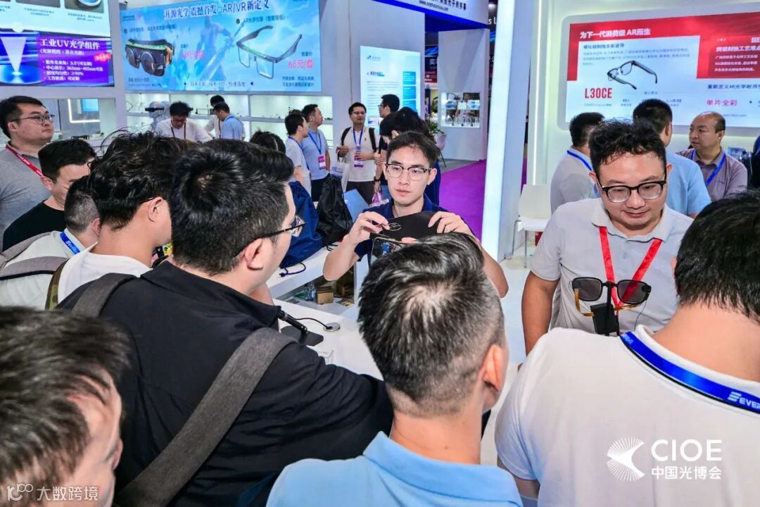 在本届光博会现场,广纳四维展台以“突破技术边界,定义未来标准”为设计理念,设置了沉浸式光学体验区。观众可通过佩戴AR眼镜,直接感受波导产品在亮度、色彩、清晰度等光学性能上的全方位提升。同时,展区配备了参数对比展示、结构解析影像与互动体验环节,帮助观众深入理解碳化硅波导及全贴合工艺的独特价值。