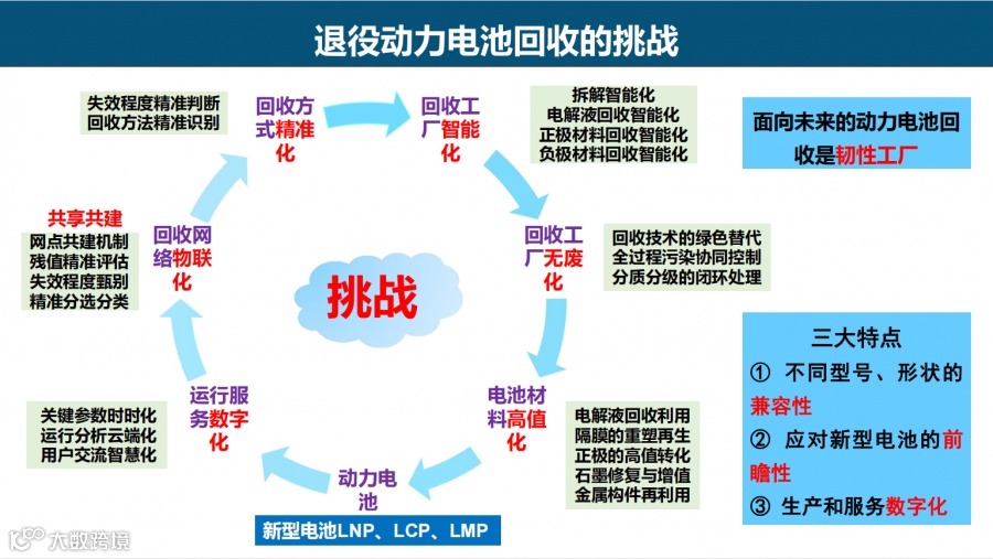 退役动力电池回收需要走高效清洁之路必须突破低成本、高回收、高价值、少污染四大极限挑战。