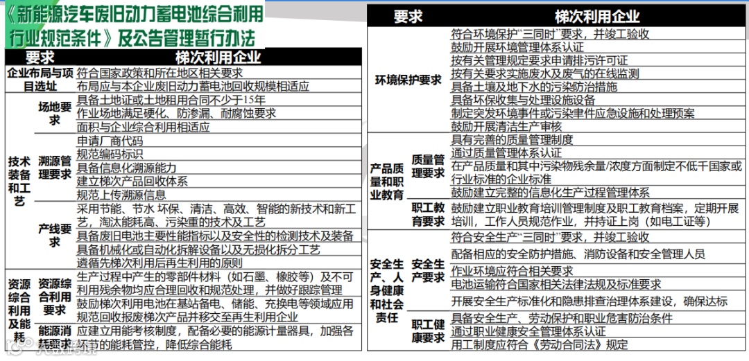 董庆银先生对中国废旧电池回收体系进行分析,对企业责任与要求(政策法规)、梯次利用、再生利用相关要求进行梳理总结,并认为中国梯次利用产业正处于由示范工程向商业化转变的过渡阶段,在通信基站备电、电网储能、低速车等领域,梯次利用已开始实用化。