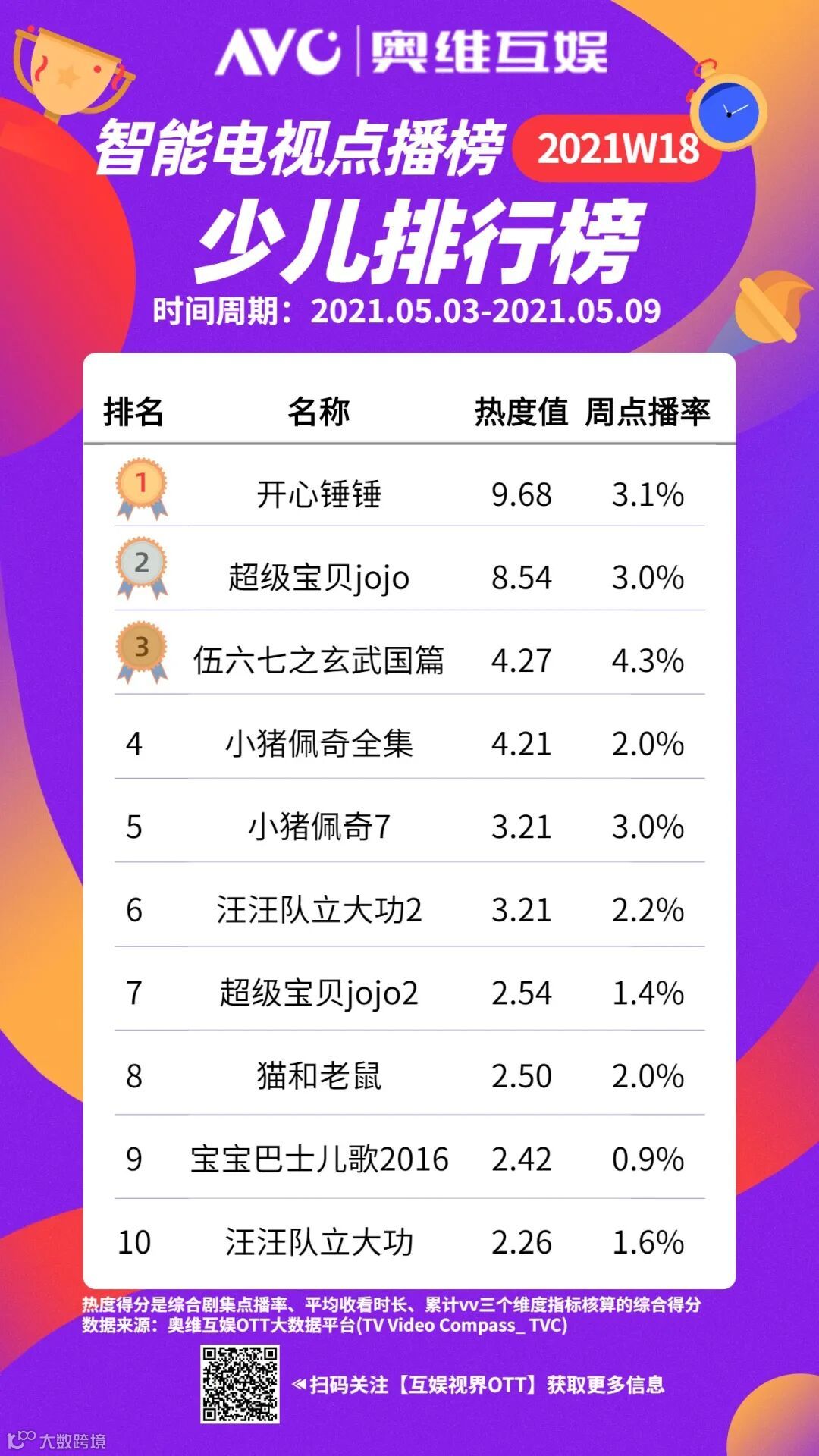 周报| 唐人街探案3引领五一假期电影点播热度——2021年第18周智能电视数据报告