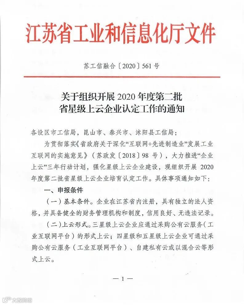 江苏省工信厅下发通知