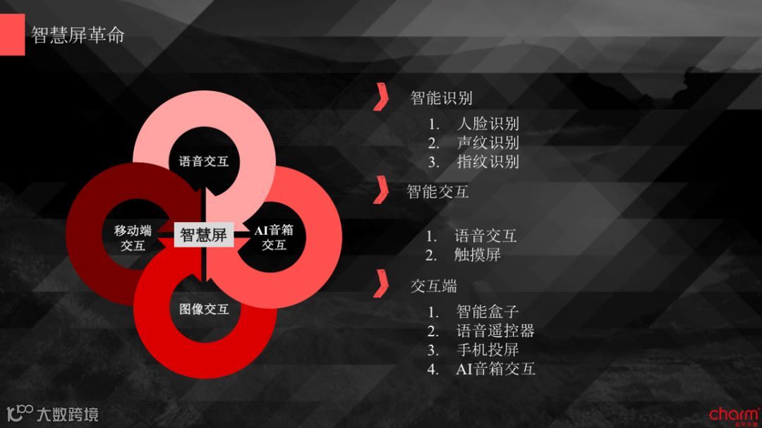 目前还有通过AI智能音响作为新的大屏交互端,在众多互联网公司的大力推动下,或将成为与大屏的交互的第四大终端。