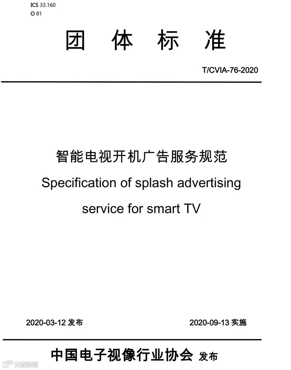 3月31日消息,中国电子视像行业协会发布《智能电视开机广告服务规范》,并于2020年9月13日起正式实施。