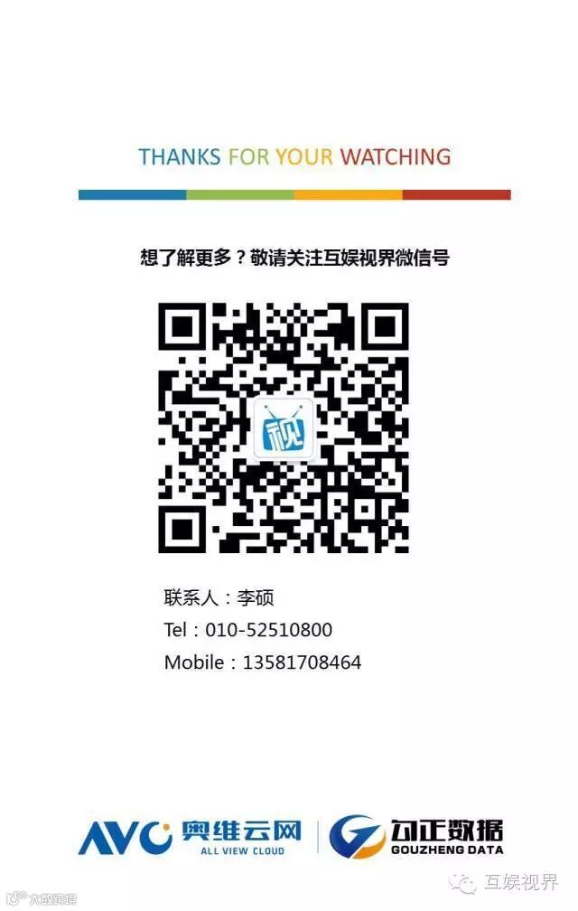 互娱视界是一个智能电视数据服务平台。该平台目前监测终端覆盖全国100%直辖市和地级市,1200个以上频道,3000个以上APK。为电视台、视频网站、游戏应用、分发平台、影视制作、广告主、硬件厂商提供全面系统的大数据解决方案。