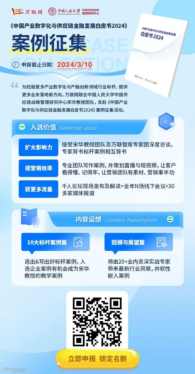 论坛现场,将由万联网及多位行业权威专家,联合发布《中国供应链金融生态调研报告(2024)》、《中国数字供应链金融生态图谱(2024)》、《中国供应链金融生态发展白皮书(2024)》等行业指导性读物。