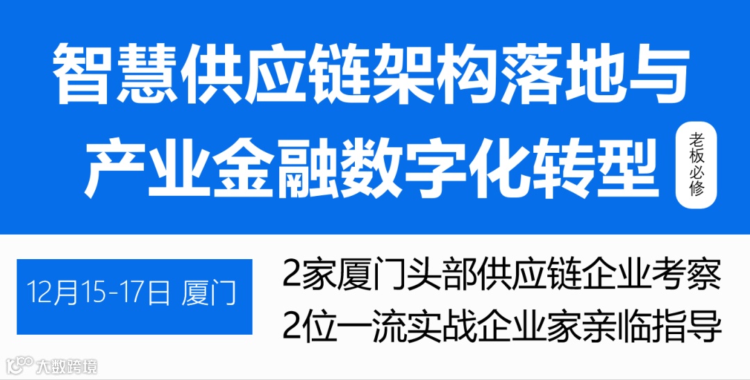 为此,万联网于12月15-17日在厦门特设“智慧供应链落地架构与产业金融数字化转型”专题研修课程。1天参访2家厦门当地的头部供应链企业,学习经营之道。2天特邀2位某头部互联网数字供应链解决方案负责人、数字供应链金融实操资深专家亲临授课,手把手带大家学习架构智慧供应链、产业金融数字化转型的秘诀。