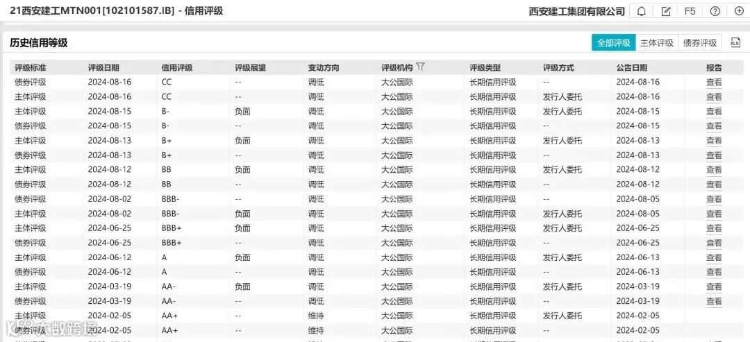 值得注意的是,自2024年2月以来,大公国际累计下调西安建工主体及债券评级已达9次。