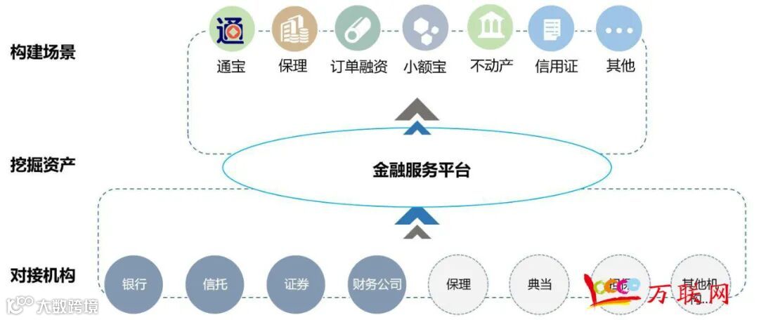 业务场景化:将分散的业务与管理集中到线上的平台,提供统一的服务界面;基于供应链的业务场景,以不同的产品对接不同层次的金融服务需求。