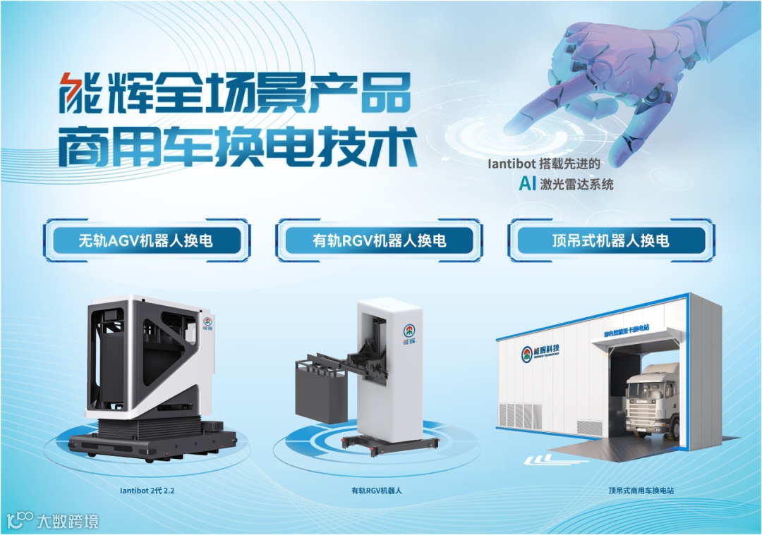 自2020年布局电动重卡换电业务以来,能辉科技致力于持续创新商用车换电技术,现已成功开发无轨AGV、有轨RGV和顶吊式换电技术,匹配不同的应用场景,实现多模式换电技术的共同发展。