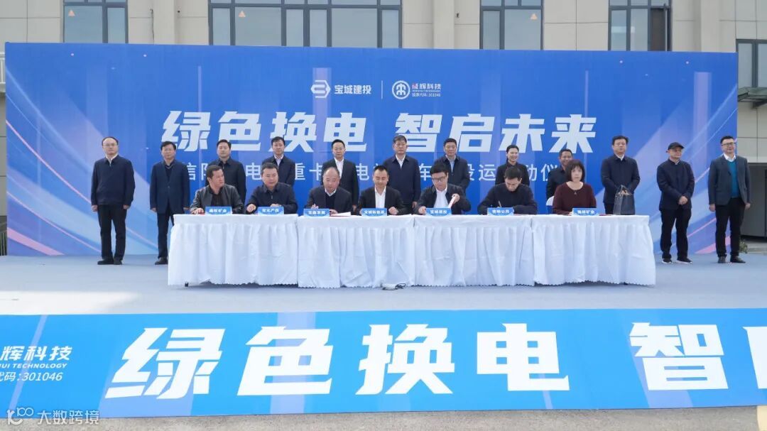 仪式尾声,能辉科技与三峡绿动签署了合作协议,宝城新能源与各合作单位签署了500万吨砂石外运合作协议,这标志着能辉科技在重卡换电应用领域进入了关键阶段。