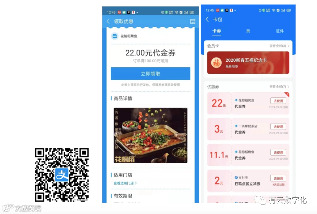 消费者扫码领券,下次进店消费可以直接抵扣卡包里的优惠券,非常便捷。