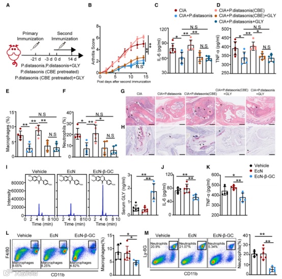 P. distasonis 通过β-GC释放 GLY 来缓解 RA 炎症
