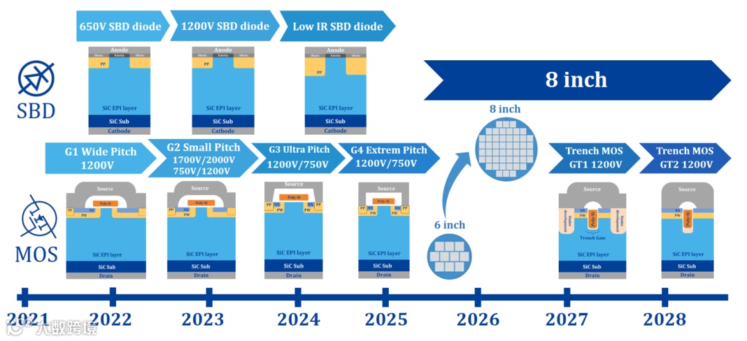 “行家说三代半”调研发现,士兰微在碳化硅功率芯片领域展现了极高的技术前瞻性,同时布局平面栅和沟槽栅两种技术路线,并坚持“一年一代”的研发节奏,持续推动技术迭代与突破。