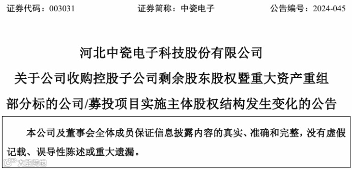 7月26日,中瓷电子发布公告称,拟收购国联万众剩余股东股权。本次交易完成后,国联万众将成为中瓷电子的全资子公司。