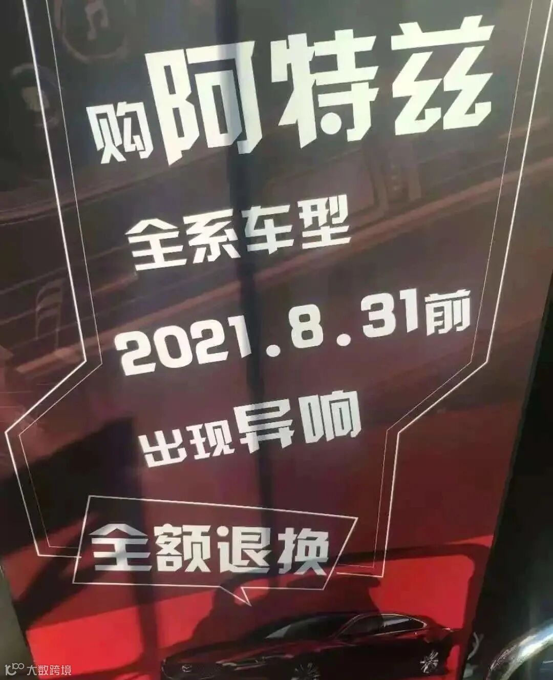 在此情况下,一马自达4s店放出了“终极大招”:消费者在该店购买阿特兹全系车型,只要出现异响问题,2021年8月31日前可进行全额退换,包括购置税、交强险。