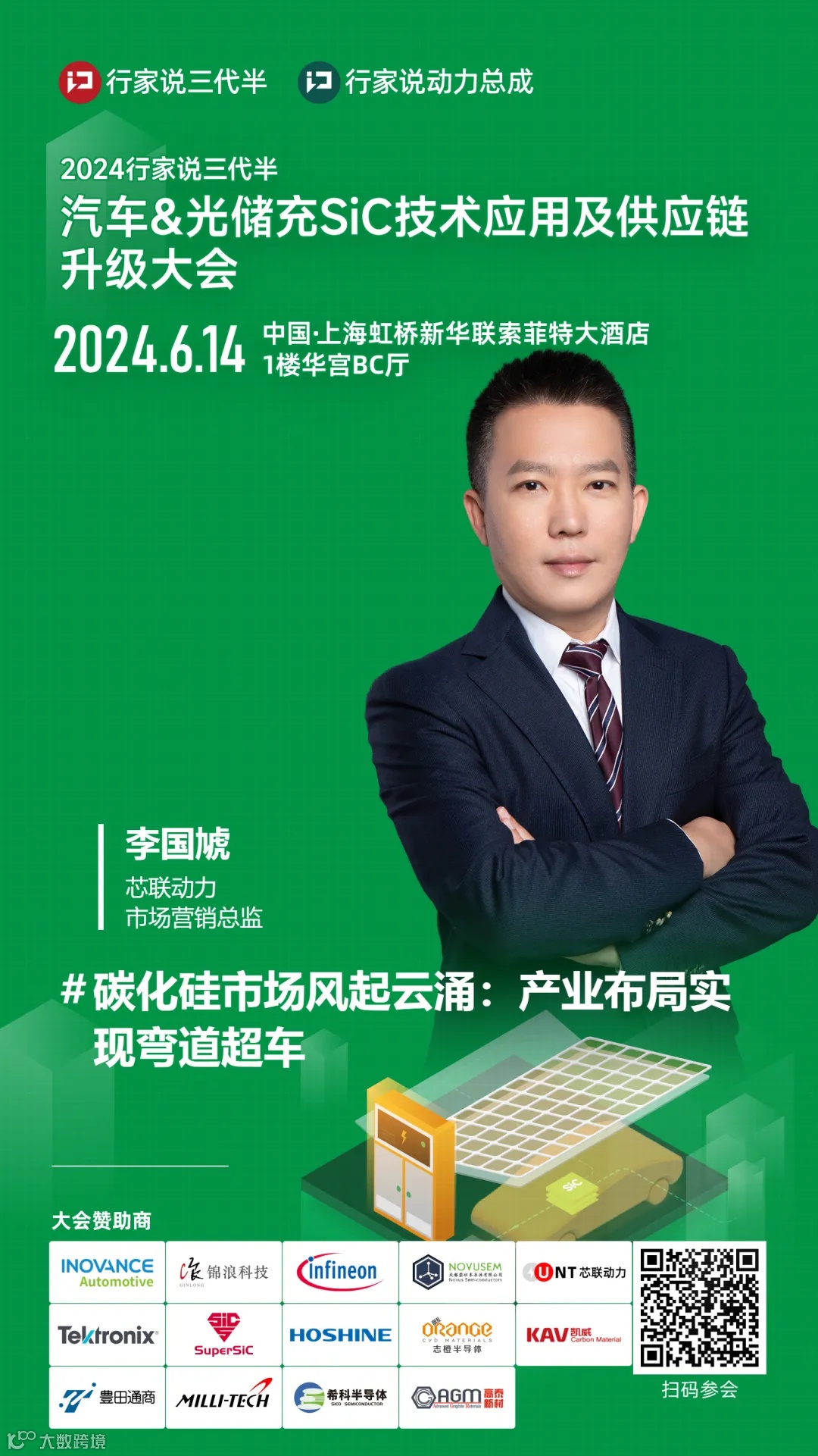 好消息是,英飞凌、三安、天岳、合盛、南砂晶圆、普兴及希科已确认出席6月14日在上海召开的“汽车&光储充与SiC技术大会”(.合集回顾.),届时,上述企业将在会上围绕8英寸碳化硅量产技术、车规级应用以及光储充应用等主题发布最新的技术报告。想要了解他们更多进展,可以扫描下方二维码报名参会:
