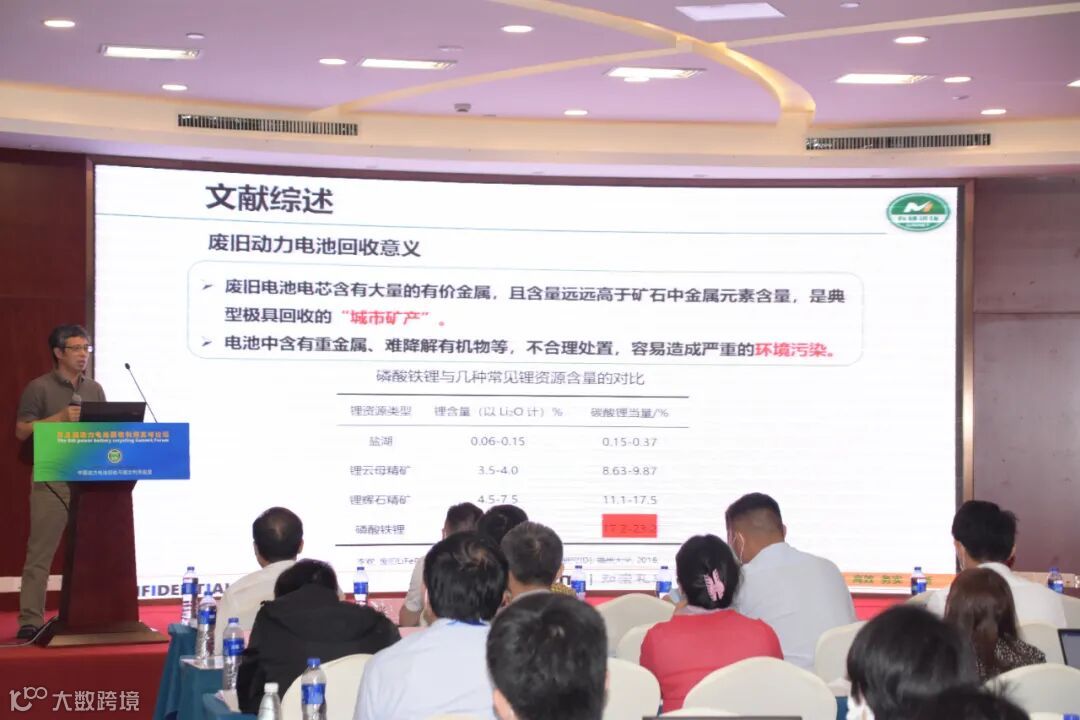 徐教授讲到,新能源汽车产业迅猛发展的同时,带动了锂离子动力电池的发展,据相关数据统计, 2018年中国动力电池市场产量达到65GWh,同比增长46.07%。2014年以来,新能源汽车迅速发展,早期投入市场的动力电池迎来报废高潮!据相关数据预测,2022年前,退役动力电池的主力都将是磷酸铁锂电池。2023年后,退役三元动力电池将成主流。