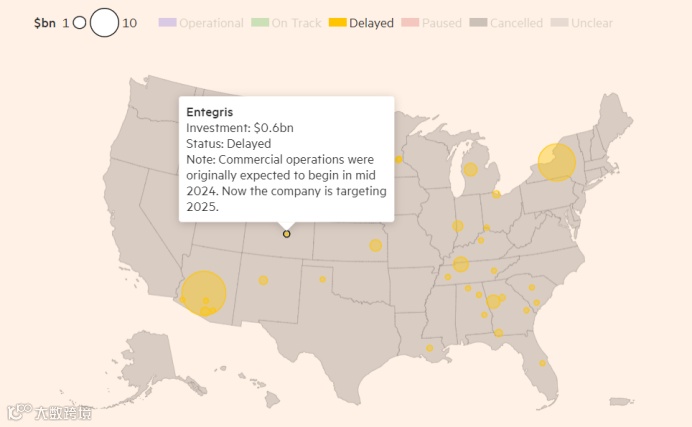 总部位于美国马萨诸塞州的CMP解决方案供应商Entegris所建项目受阻,目前处于“延迟建设”状态。据悉,该项目总投资约6亿美元(约43亿人民币),项目原计划在2024年中期开始商业运营,但现在这个时间点被推迟到了2025年。