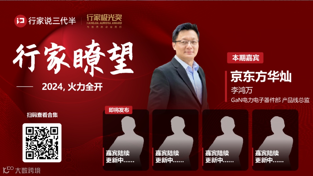 本期嘉宾是京东方华灿光电GaN电力电子器件部 产品线总监 李鸿万。接下来还将有更多的领军企业参与《行家瞭望》,敬请期待。