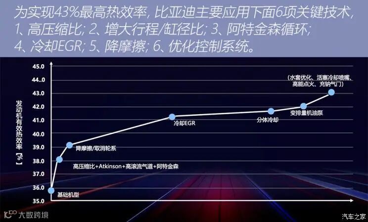 在DM-i中,传统汽油发动机是影响整体效率的重要一环。根据目前公布的消息,它将匹配比亚迪骁云系列发动机,最高热效率可达43%,在目前量产发动机热效率中它名列前茅。
