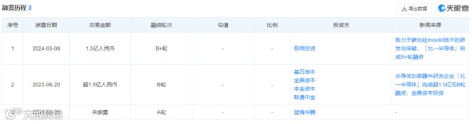 5月8日,北一半导体官微宣布,他们成功完成了B+轮融资。目前由上海吾同私募基金管理有限公司领投的1亿元资金已经到位,另有5000万元投资金额在结尾工作中,预计本轮融资总额将达到1.5亿元。