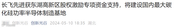 ● 长飞先进:获东湖高新区股权激励专项资金支持,武汉SiC基地预计6月封顶;