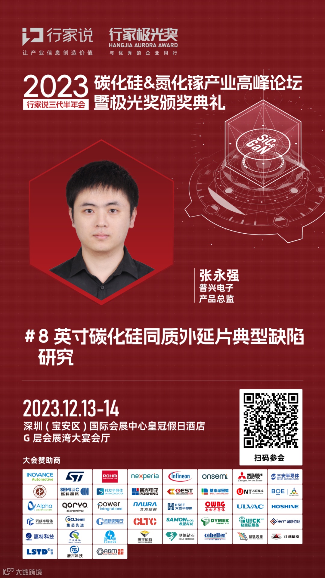 其中,普兴电子已确认参会。届时,普兴电子产品总监张永强将带来《8英寸碳化硅同质外延片典型缺陷研究》的主题报告。
