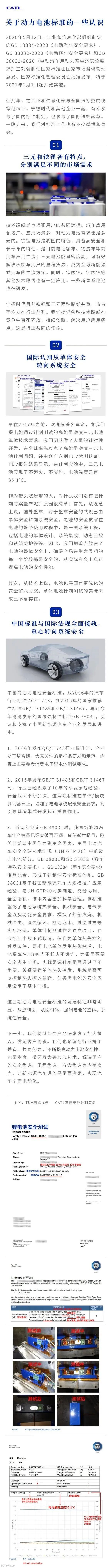 宁德时代表示,早在2017年之前,欧洲某著名车企,向我们提出能通过针刺测试的高能量密度三元电池单体技术要求。我们团队做了大量的针对性开发,在全球率先攻克了高能量密度三元电池针刺问题,并由客户送到TÜV检测认证。TÜV报告结果显示,在针刺实验中,三元电池实现了不起火、不爆炸,电池温度只有35.1℃。