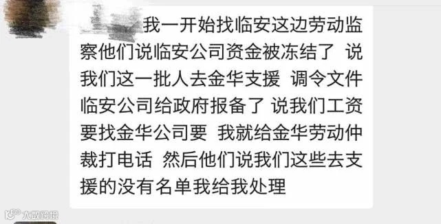 “临安那边钱被冻结了,然后我们去找金华发工资,但是金华没有我们名单。”该同事表示,这是临安劳动仲裁帮她查询到的信息。