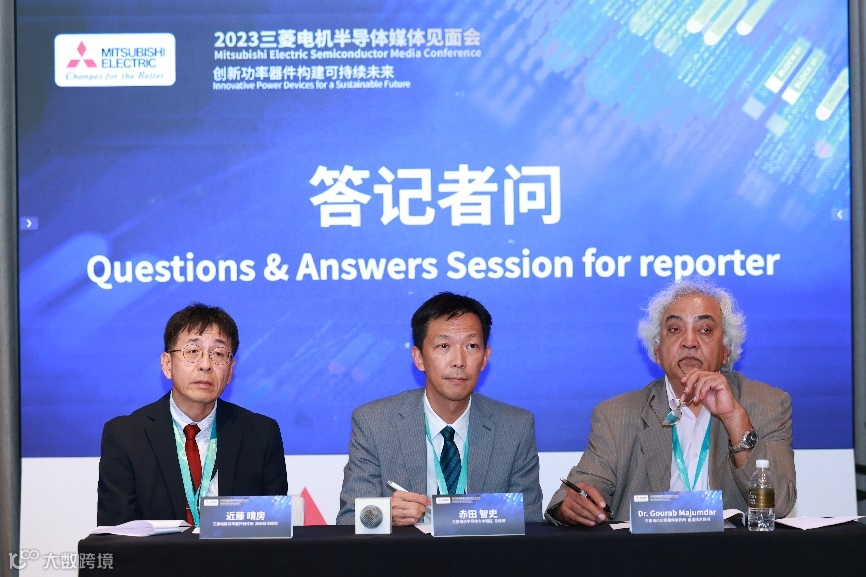 三菱电机半导体大中国区总经理赤田智史、三菱电机功率器件制作所首席技术顾问Gourab Majumdar 博士、三菱电机功率器件制作所高级技术顾问近藤晴房、三菱电机半导体大中国区市场总监陈伟雄、三菱电机半导体大中国区技术总监宋高升莅临发布会现场进行了主题演讲,并针对记者提问,就三菱电机最新产品和技术趋势、市场战略进行互动。