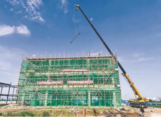 2021年6月,该GaN项目标准化厂房一期1栋厂房第一区段主体结构封顶。