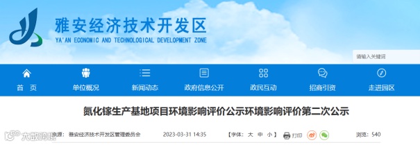 3月31日,雅安经济技术开发区管理委员会对外发布了“氮化镓生产基地项目环评第二次公示”。