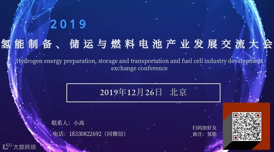 根据产业规划, 2030年氢能产业将成为我国新的经济增长点和新能源战略的重要组成部分,氢能产值将突破1万亿元,燃料电池汽车保有量达到200万辆。2050年,氢能市场规模到达4万亿人民币。目前氢燃料电池的核心专利、核心材料和零部件基本上都来自日本,面对巨量的氢能需求,氢气的高密度储存、加注和燃料电池关键技术突破是我国发展氢能源和燃料电池汽车一个绕不过的难题。为促进氢能产业和燃料电池汽车关键技术突破,推动产业标准、安全检测、监管体系完善和加氢基础设施建设,中国电子节能技术协会新能源与节能汽车委员和中国电池工业网将于2019年12月26-27日联合举办2019氢能制备、储运与燃料电池产业发展交流大会。