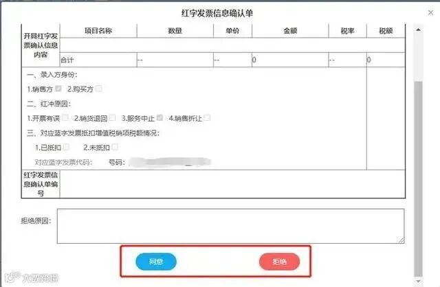 核对红字发票信息确认单,并对红字申请进行审核,“同意”或“拒绝”