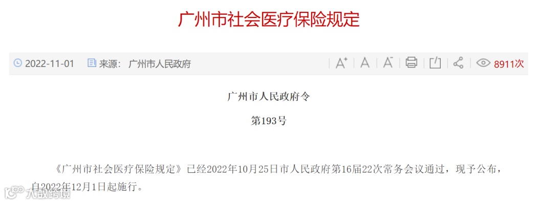 今年10月,广州市出台了新的政府规章《广州市社会医疗保险规定》(广州市人民政府令第193号,于12月1日起正式实施。