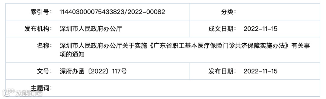 2022年11月15日,深圳市人民政府发布了《关于实施<广东省职工基本医疗保险门诊共济保障实施办法>有关事项的通知》,自2022年12月1日起正式生效。