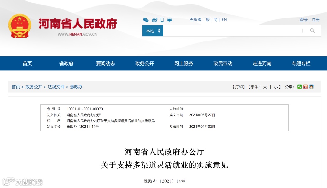 支持多渠道灵活就业,落实保居民就业任务河南省政府办公厅近日出台《关于支持多渠道灵活就业的实施意见》,14条给力措施为灵活就业保驾护航。