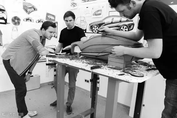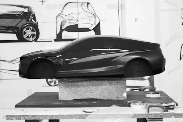 第5~8周以1:5的比例做油泥模型,将平面图立体化,提供一个立体的汽车形态。在其基础上进一步推敲,譬如曲面应该往外鼓一点还是内收一点,曲线应该往上调1毫米还是往下1毫米。