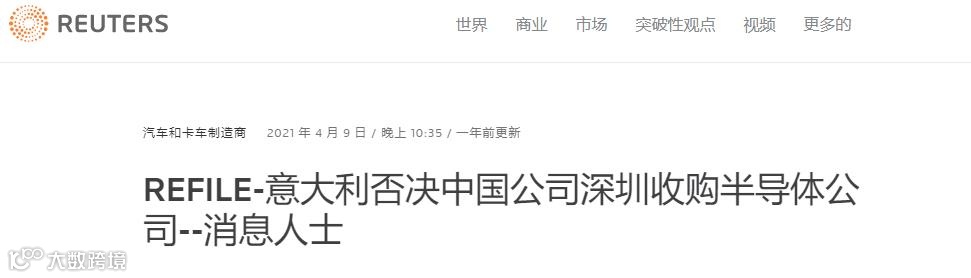 据路透社2021年报道,意大利政府用一项“黄金权力”否决了这起收购案——3月31日,意大利发展部签署行政令进行否决;4月8日,意大利新任总理德拉吉又向媒体确认否决了相关收购案。