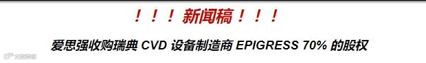 1999年10月,爱思强宣布与瑞典 CVD 设备制造商 Epigress签署协议,收购后者70% 的股权。