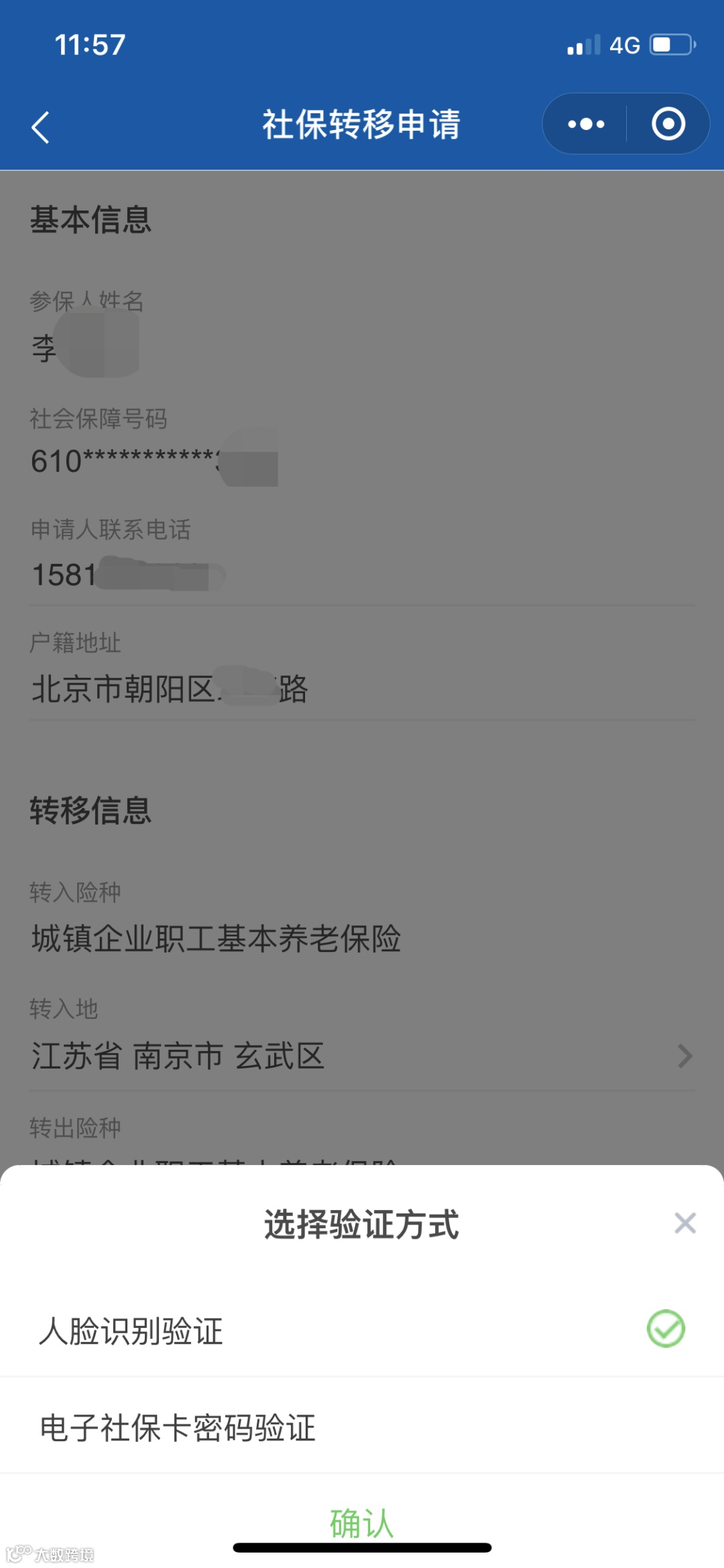对于已开通网上申请的地区,您可以点击【全国服务—社保转移申请】服务,填写转移申请相关信息,并经人脸识别的实人认证后,提交申请。