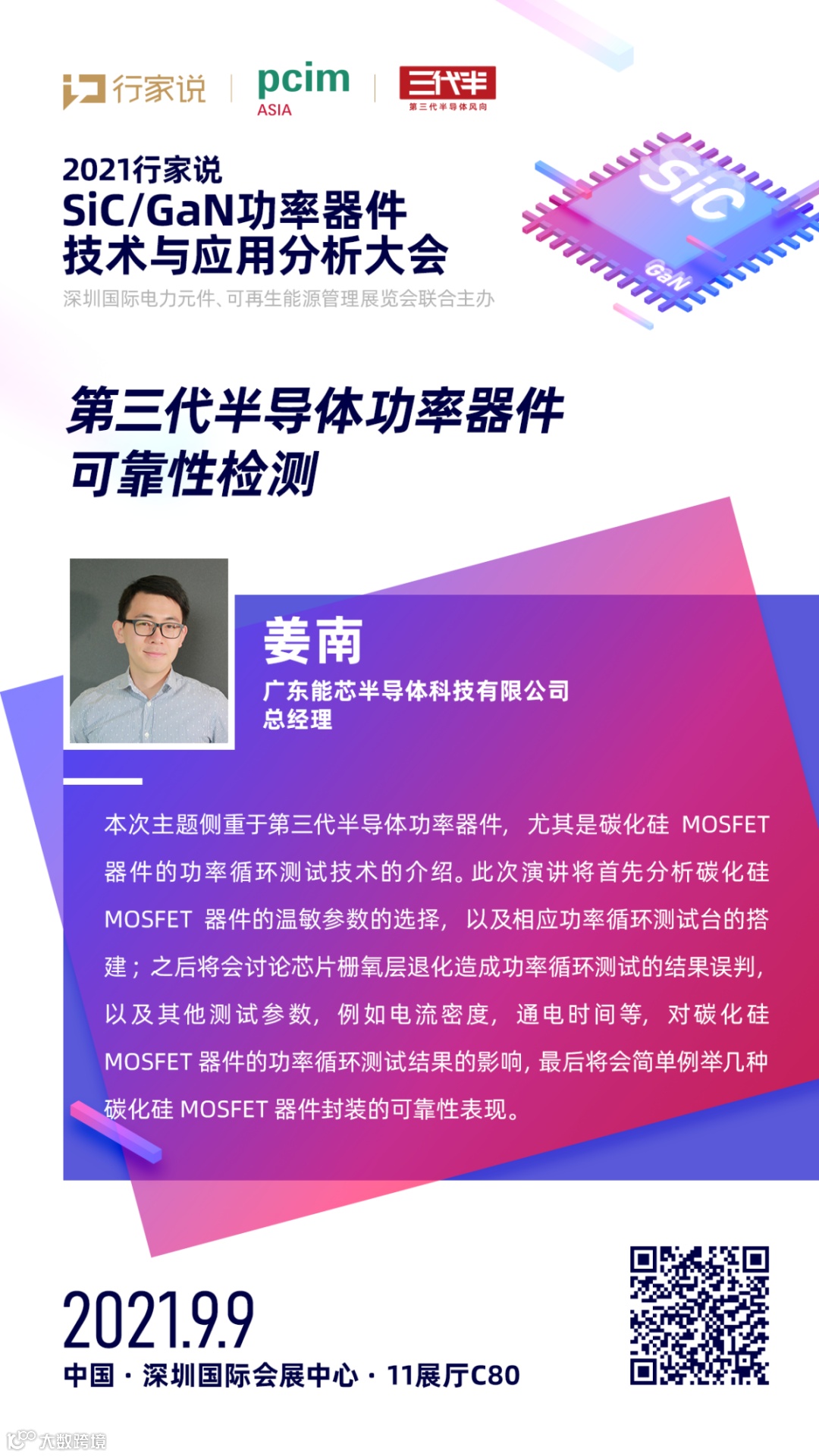 》演讲。本次主题侧重于第三代半导体功率器件,尤其是碳化硅MOSFET器件的功率循环测试技术的介绍。