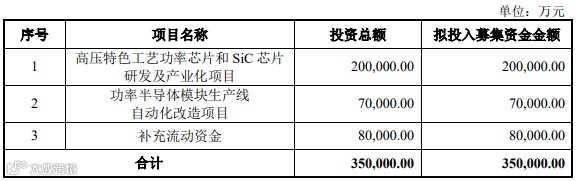 而在今年3月2日,斯达刚通过非公开发行股票,募集35亿元,其中20亿元用于“高压特色工艺功率芯片和SiC研发及产业化项目”,预计将形成年产36万片功率半导体芯片的生产能力。