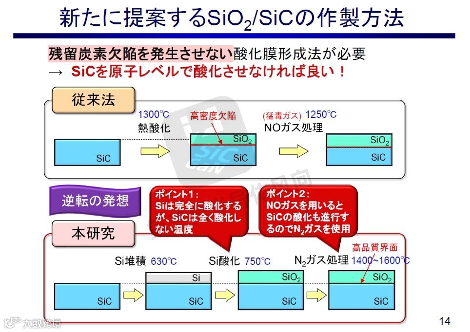 针对这一现象,京都大学认为,SiC热氧化往往会使界面出现残留碳,从而导致产生缺陷,所以业界需要一种新的不产生残留碳的氧化膜制作方法。
