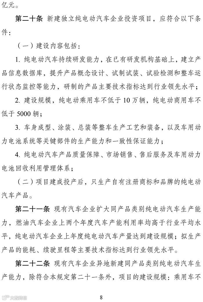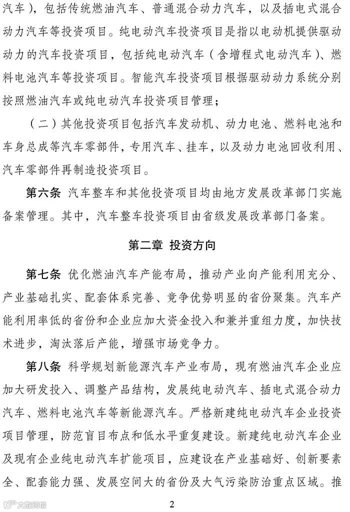 2018年12月18日,发改委发布2018年第22号令。文件指出《汽车产业投资管理规定》已经国家发展和改革委员会主任办公会议审议通过,现予以发布,自2019年1月10日起施行。经国务院同意,《政府核准的投资项目目录(2016年本)》中新建中外合资轿车生产企业项目、新建纯电动乘用车生产企业(含现有汽车企业跨类生产纯电动乘用车)项目及其余由省级政府核准的汽车投资项目均不再实行核准管理,调整为备案管理。