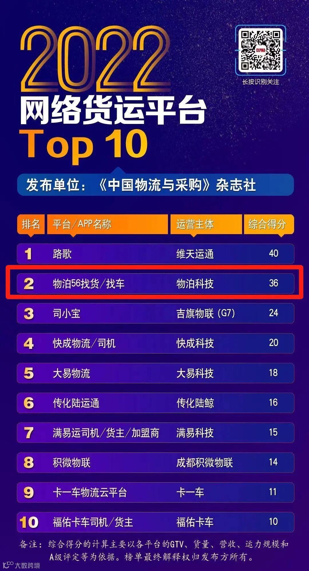 沄柏资本投资企业中:物泊科技入选2022网络货运平台TOP10。