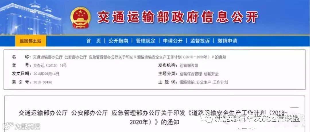 6月14日,交通运输部办公厅公安部办公厅应急管理部办公厅关于印发《道路运输安全生产工作计划(2018—2020年)》的通知,并针对客货运输车辆“三超一疲劳”、两客一危”、重点营运货车等方面的治理做出重要批示。
