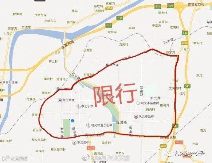 ⑤ 限行区域:S235(原S237)以西(不含S235)、杜甫路以北(含杜甫路)、孝义路以东(含孝义路)、光明路以南(含光明路)、货场路以南(含货场路)、河洛路以南(不含河洛路)区域。