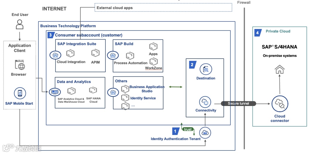 这是BTP上非常重要的组成部份,要理解BTP的架构就一定要知道这个东西,说白了就是个代理,很多服务都要通过该组件进行互联互通。如果你对BTP上的各种服务创建和使用比较熟悉的话,就会感受BTP产品团队的设计理念,就是我只需要在BTP维护这些连接信息,然后各种服务都可以再次复用它们,只要在服务中指定一下就行了,比如在SAP Build Apps里就可以引入对应的连接信息,一次性获取后台系统的各个OData Service。